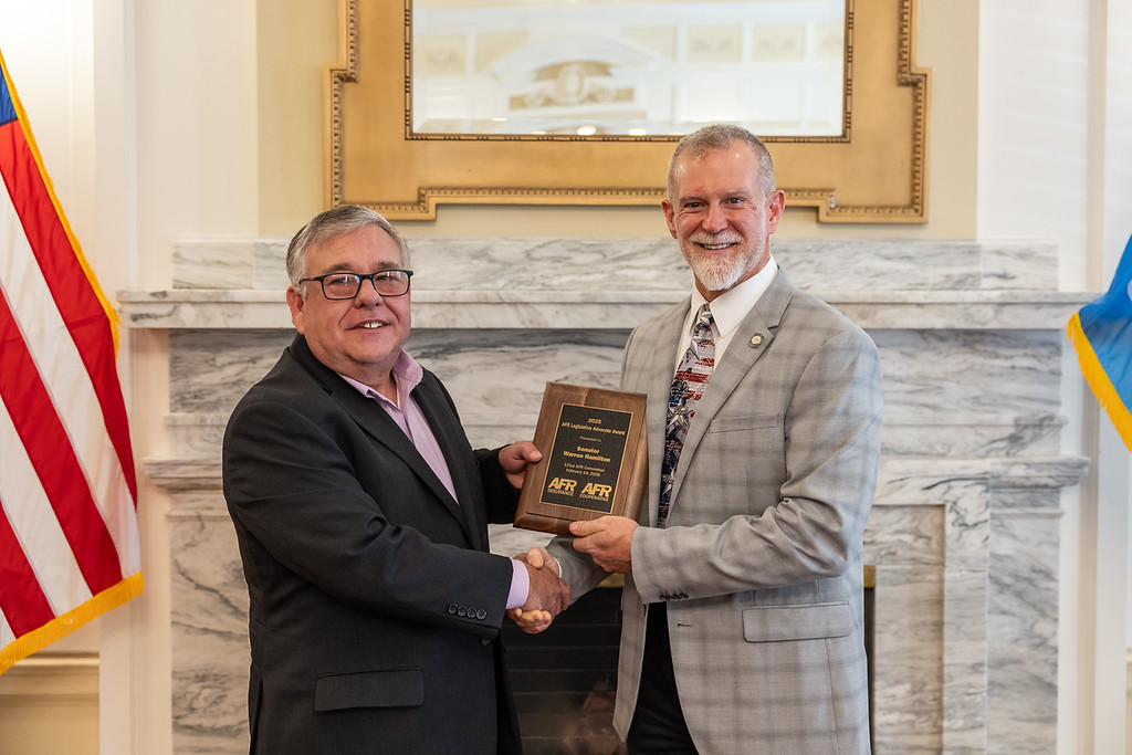AFR President Scott Blubaugh presented Hamilton with the award at the state Capitol.